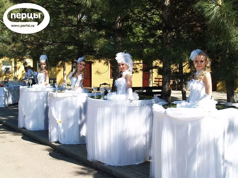 На празднике может присутствовать до четырех Леди-Фуршет, в зависимости от размаха торжества и количества гостей.