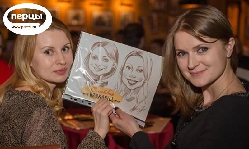 Милые портреты, которые останутся у вас на память, будут служить напоминанием о необычно проведенном событии, а безобидные дружеские шаржи еще долго будут вызывать улыбку и производить приятное впечатление, навевая воспоминания о торжестве.