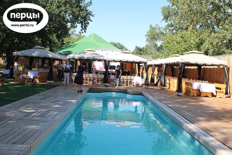 Инфраструктура «Рублевки» специально предназначена для проведения свадебного торжества - встреча у ворот в наилучших русских традициях; арки, качели, беседки и площадка перед бассейном - прекрасно создают атмосферу выездной церемонии в европейском стиле.