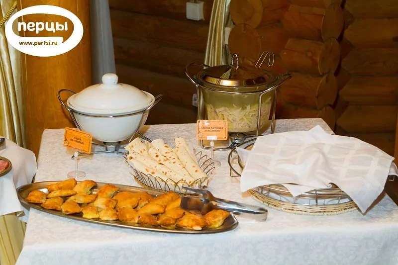 Шикарный зал ресторана рассчитан на 120 посадочных мест в форме восьмиугольника - единственный в регионе выполнен из дерева и с высотой потолка почти 10 метров.